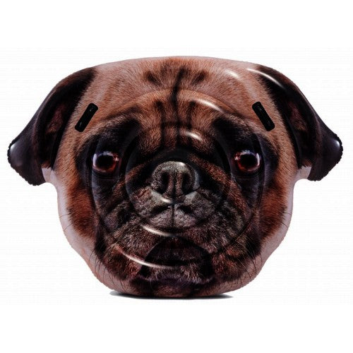 ¡El mejor amigo del hombre ha llegado en forma de inflable para estar a tu lado!. Disfruta de la colchoneta de Carlino INTEX con dimensiones de 173x130 cm y un vinilo de 0,28 mm de grosor. El flotador cuenta con 2 asas soldadas a la lona y la impresión fotorrealista de la graciosa carita de un perro de raza Carlino. Colchoneta individual para piscina o playa, se recomienda a partir de 14 años, peso máximo 100 Kg.