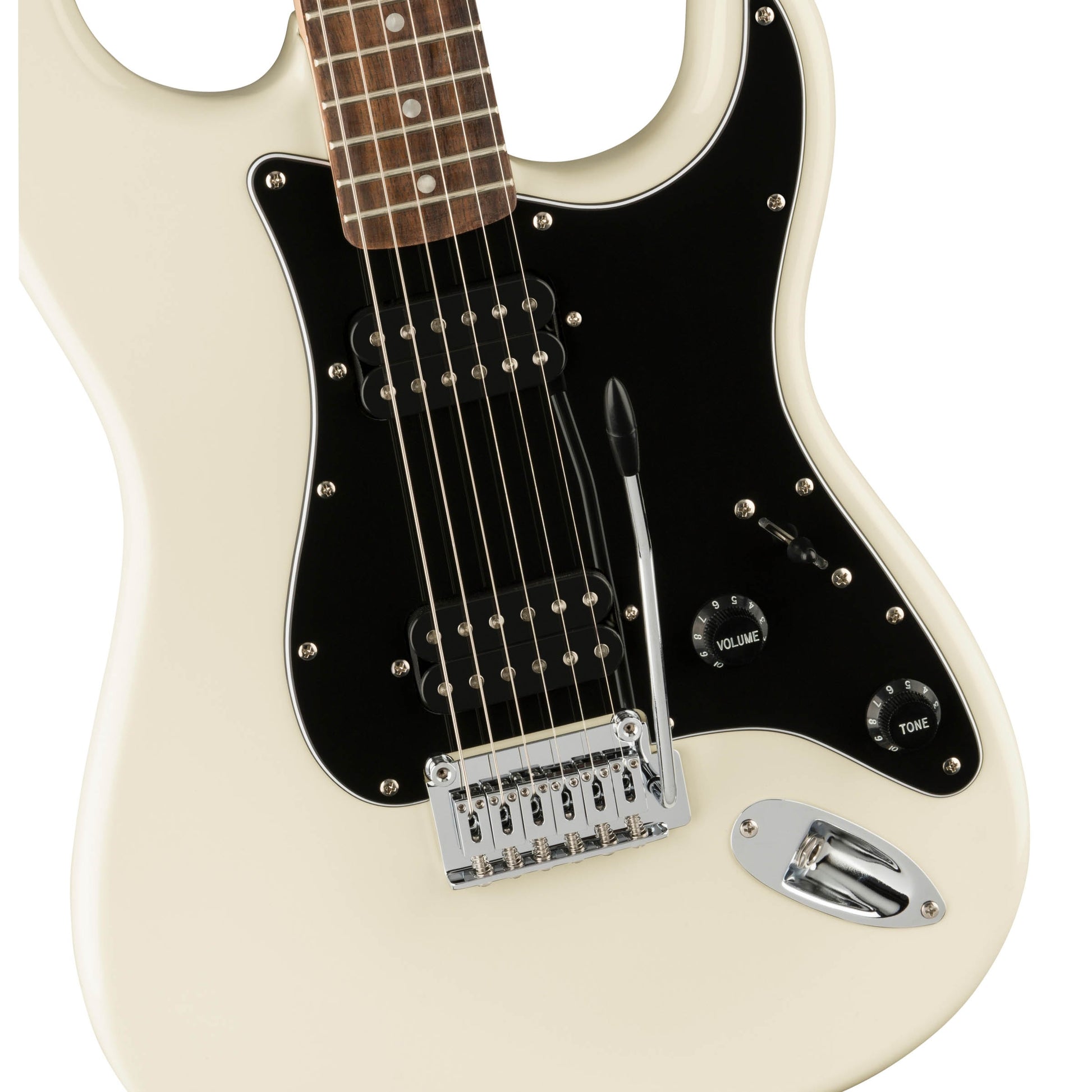 - Placa del cuello: 4-Bolt Squier Pickguard: 3-Ply Black Pickup Cubiertas: Negro