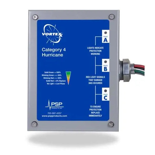 SUPRESOR 480VAC 3-Phase Delta, 400kA, Type 1 y 2, NEMA 4, Real-time per phase LED indicators, audible alarm, remote contacts, Smart diagnostic, indicating remaining surge capacity, Sine wave tracking, EMI/RFI noise filtration (-40db), Enclosure